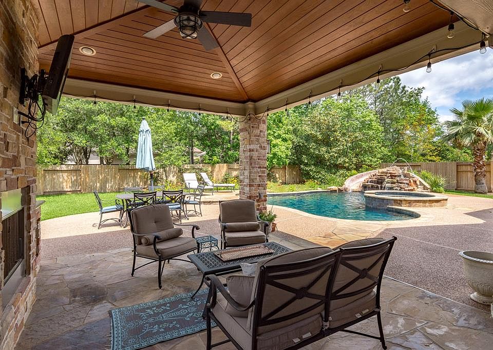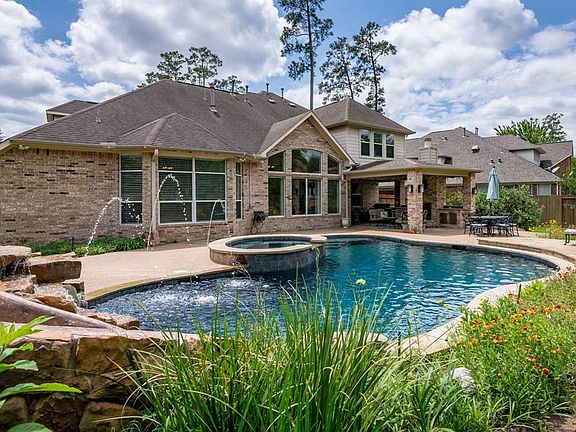 Exceptional Village Degas plan in the exclusive neighborhood of Pepperdale in Player Woods. Classic Traditional elevation with inviting front porch. Enter to find a formal entry with custom millwork and two-story ceiling with staircase flanked by a large private study with soaring ceiling and a large formal dining room. Walk through the entry and into the family room with fireplace and wall of windows overlooking the back gardens and pool. The well planned kitchen and breakfast room are open the family room and give direct access to the amazing outdoor kitchen and living space with fireplace. The large private backyard features a sparkling pool with stone waterfall and slide. The primary suite is conveniently located downstairs with a view of the pool. Upstairs you will find a game room with a door and closet providing privacy and flexibility. Two bedrooms feature a Hollywood bath and walk in closets. Opposite the balcony is a computer station and additional bedroom and full bath.