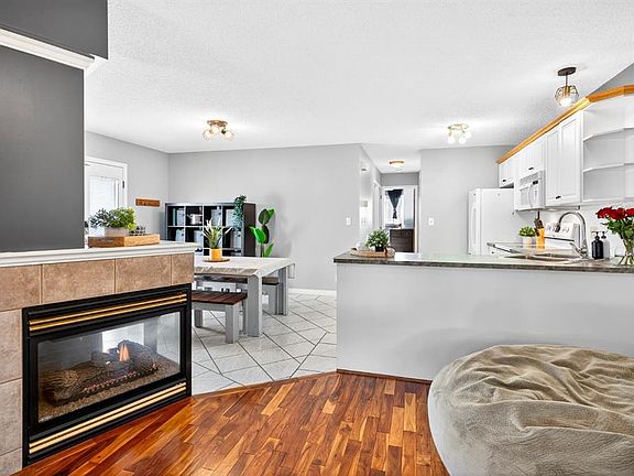 ***OPEN HOUSE SUNDAY, OCT 5TH, 12-2PM*** INCREDIBLE PRICE for a fully finished duplex with a garage! Welcome to 51 Ross Place. Tucked onto a quiet street in the heart of Crossfield, this home is filled with thoughtful details and warm, inviting spaces. **Highlights You’ll Love:** Oversized single garage * Beautiful 3-way fireplace * Hardwood in the sunny living room * Tiled kitchen & dining area * 2 large bedrooms upstairs + 2 more downstairs * Huge rec room with brand new LVP flooring * Let's get the details: South-facing backyard with side deck & plenty of lawn. Step inside and be greeted by soaring entryway ceilings. Upstairs, the living room glows with sunshine from big front windows, centered around a cozy three-sided fireplace. The dining room is made for gathering, with space for a large table, coffee bar, and easy access to the side deck. The kitchen offers a smart, open layout that flows seamlessly into the living areas. On this floor you’ll also find two generously sized bedrooms, both large enough to fit a king bed. The primary bedroom even has space for a small desk and includes wall to wall closets. The updated bathroom features new flooring, fresh paint, and modern cabinetry. Downstairs, the fully finished basement offers endless possibilities. The rec room stretches over 19’, perfect for a home gym and media area combined. Two more oversized bedrooms with big windows, a 3-piece bath, laundry room, and extra storage spaces round out this level. The community has mature landscaping so you can enjoy big, beautiful trees in your front yard that offer beauty, shade and privacy. Just 15 km north of Airdrie, Crossfield is a quieter, friendlier place to call home. With its natural beauty, scenic walking paths, parks, playgrounds, and a community centre, it’s designed for connection and comfort. Families love how close schools and the golf club are! Overall - A home with space, charm, and community at an INCREDIBLY ATTAINABLE PRICE -don’t miss your chance to experience the peaceful lifestyle waiting for you at 51 Ross Place.