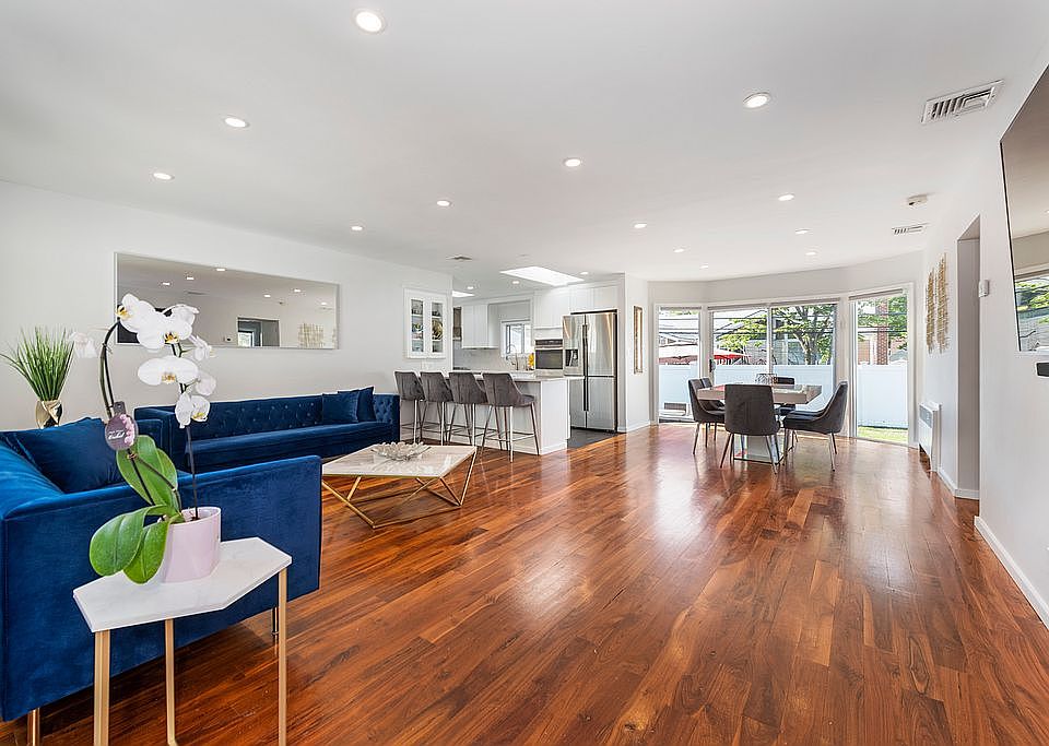 MUST SEE!!! Spectacular fully renovated house located in N. Woodmere coveted quiet tree lined block in SCHOOL DISTRICT #14. Open concept floor plan features Three bedrooms with two full bath. Modern kitchen, stainless steel appliances with custom cabinetry whereas the island offers bar stool seating along with Caesar stone counter tops throughout the the whole kitchen and the bathrooms are elegantly designed. This house has a full finished basement with one bedroom, one full bathroom, office, family room and playing area. Total sq ft including basement is more than 2500 Brand new hardwood floors, central A/C and boiler. All Mechanicals are high efficiency. Beautiful and sunny back yard fully fenced along with pavers seating area. LOW TAXES!!!! After STAR ONLY 12K!! Not on flood zone! Nearby LIRR, schools, parks, and shopping centers.