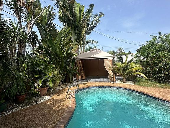This 3/2 pool house has a very private tropical backyard oasis with large Areca & Travelers palms and bamboo lining the perimeter. The house has remodeled kitchen with granite countertops and stainless steel appliances, smart thermostat for lower AC bills, hurricane glass in most windows (shutters for the others). The location is incredible with an I-95 onramp nearby which allows for easy to just about anywhere. 10-15 mins will get you to the beach, Las Olas, downtown FTL, FLL airport, Lauderdale by the Sea, Hollywood, or Pompano. 35-45 mins will get you to the Everglades, Wynwood, downtown Miami or Miami airport. Also, walk to restaurants, Walgreens, Publix, shopping, or even to Chase Stadium to see Messi play.