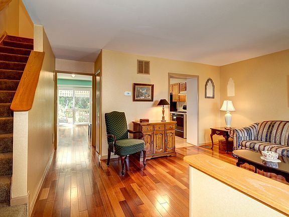 Well maintained townhome in Cedarside Farm with numerous updates! 2 bedroom, 1.5 baths, fully finished walk-out basement w/ family room and rear balcony deck with retractable awning! Brick exterior, beautiful hardwood floors throughout! New furnace, windows, water heater and roof! Updated baths featuring ceramic tile. Located in a cul-de-sac and backs to trees, offering privacy and views.