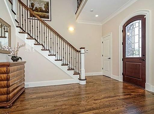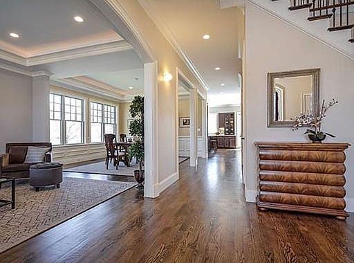 A beautiful new construction home in a neighborhood offering incredible proximity to schools and great commuting access. The foyer leads you to an open-concept formal living room and dining room with great windows, a fireplace in the living room, beautiful decorative molding in the dining room and high tray ceilings throughout. Travel down the hallway to a second large open area featuring a gourmet kitchen with a large center island, beautiful dark wood cabinets and fabulous designer touches. The kitchen area opens to a casual family room with a fireplace and wonderful views of the adjoining patio and back yard. The main floor also includes a fabulous mudroom and a bedroom or home office space with a full, en-suite bath. The second floor is anchored by a master suite with fireplace, a bedroom-size walk-in-closet, and a spa-like bath. Three additional bedrooms with adjoining baths complete the upper level. The lower level features a massive playroom, two bedrooms and a bonus/media room.