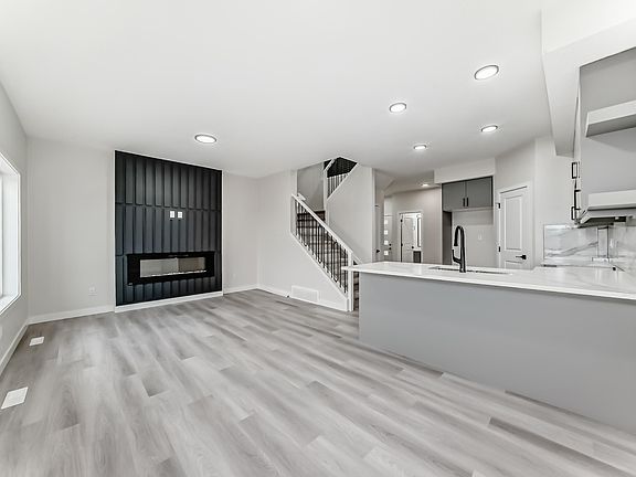 Beautiful Duplex in Prescott, Spruce Grove! Welcome to Prescott, a serene and family-friendly community. This front double attached garage duplex backs onto greenspace and includes a finished deck—perfect for relaxing outdoors. The open-concept main floor features a walk-thru pantry and a functional layout ideal for everyday living. Upstairs, the primary suite at the front offers a 5-piece ensuite, while two additional bedrooms, a laundry closet, and a cozy loft complete the level. Includes a separate side entry for future basement development. This home has it all—comfort, space, and potential!