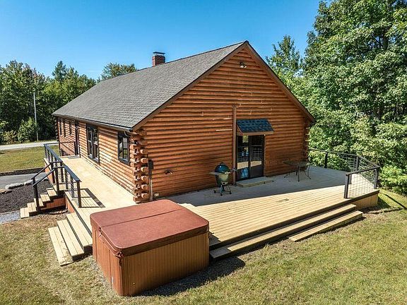 Set privately on a beautiful 1.63 acre site in an established rural neighborhood, this expansive Log Home offers 'my space' for every member of the family. The Great Room concept is on full display as the well planned kitchen works in perfect harmony with the living and dining areas. Beautiful wood floors, Cathedral ceiling, hickory cabinets, granite counter top, pellet stove, heat pump, lots of glass to let the outside in, with easy access to the wrap-around deck and hot tub. Spacious primary bedroom suite with walk in closet and tile bath. Two comfortable bedrooms, large full family bath with tile flooring and laundry - all on the main level. The lower level boasts of nicely finished living areas - ideal for rec room, studio and office needs. Single car garage with direct access to lower level mud room. Large storage building. Attractive landscaping, paved drive and more.