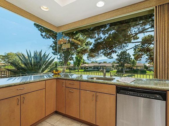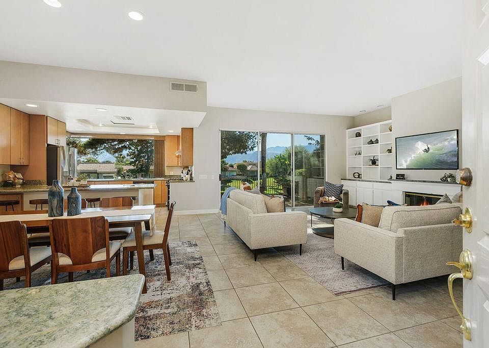 Welcome to Mission Hills Country Club living in this beautiful 3 bedroom, 2 bath condominium perfectly positioned on the 8th hole of the iconic Pete Dye Golf Course. This residence captures the very best of desert luxury, offering mountain vistas and tranquil Southwest fairway views that create an atmosphere of relaxation from the moment you arrive. A custom-designed courtyard entry welcomes you into an expansive open-concept floor plan filled with natural light. The living room showcases elegant built-in cabinetry, a charming fireplace, and oversized picture window framing the captivating scenery outdoors. The upgraded kitchen is a chef's delight, featuring stainless steel appliances, contemporary finishes, a convenient breakfast bar, and an adjoining dining area ideal for casual meals or intimate gatherings. The generous primary suite with wall-to-wall closets and a spacious en-suite bathroom offering dual vanities, a soaking tub, and a separate walk-in shower. The third bedroom, currently configured as an office/den, provides versatility for remote work, creative pursuits, or additional guest accommodations. Additional highlights include a 3-car garage with custom built-ins for exceptional storage, as well as low-maintenance desert landscaping that complements the home's polished architectural aesthetic. Residents of Mission Hills Country Club enjoy world-class amenities, including championship golf, renowned tennis and pickleball facilities, fitness center, and a beautifully remodeled clubhouse that serves as a vibrant hub for social and recreational activities. MHCC boasts 3 private golf courses, National Croquet tournaments, US Open & numerous USTA National Championships, Pickleball, Gym and Westin Rancho Mirage Golf Resort & Spa ,Golf, Fitness, Tennis and Pickleball - memberships are available. Ask for membership details to come enjoy your season in the sun!