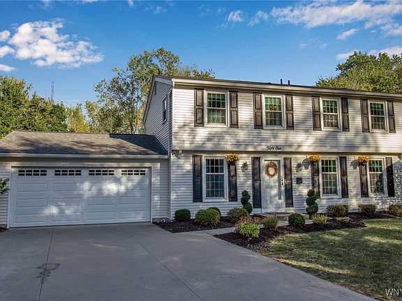 Discover your dream home in Amherst's coveted Sweet Home School District! This stunning 5-bedroom, 2-story residence features a remodeled kitchen (2019) with quartz countertops and a spacious island, perfect for entertaining. All new appliances which are also included. Enjoy the convenience of a remodeled half bath on the first floor and an attached 2-car garage. Formal living room and dining room are great for gatherings! Family room offers a cozy wood burning fireplace, with a sliding door that leads you out to the deck. Upstairs, find five generously sized bedrooms and a fully renovated main bath. The home boasts modern comforts with updated furnace and AC (2019) and newer windows. Step outside to your fully fenced yard with an in-ground heated pool and a large deck, ideal for summer gatherings. With a double-wide concrete driveway and a finished basement that includes a dedicated laundry space, this home checks all the boxes! Don't miss out! Delayed negotiations until 10/15 at 4:00pm.