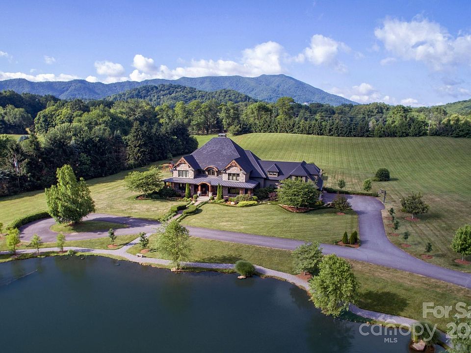 Willow Mountain Estate is located in the gorgeous countryside of Waynesville, minutes to the charming downtown. This impressive home sits on 11 level acres with a large trout pond and native rushing trout stream. Catch rainbow trout and prepare them in your inviting outdoor kitchen & dining area. Enjoy summer days outside at the pool surrounded by amazing mountain views and exquisite gardens. Enter this magnificent home through the grand foyer with beautiful hardwood floors leading you to the great room with a two-story wall of windows and stone fireplace. Thoughtful design with attention to flow in the design of this home, fantastic for entertaining! The kitchen, master bedroom and living room all open to the rear terraces and pool. The second floor offers spacious guest suites a theater, entertainment room and an intimate bar and lounge to gather at the end of a fun day together! PLUS - Barn/Garage/Workshop, Huge Pavilion, Organic Gardens & So Much More!!! High Speed Internet YES!