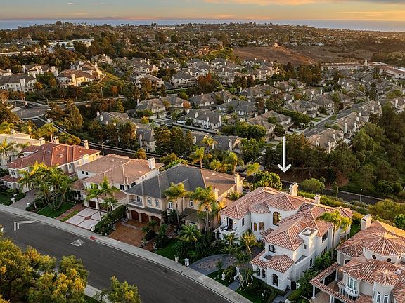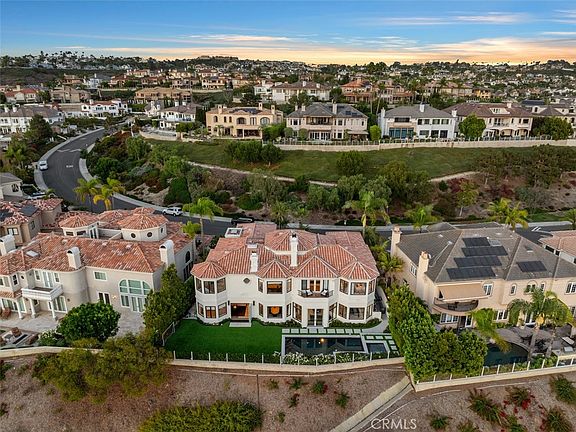 This stunning custom estate, nestled in the exclusive Ocean Ranch community of Laguna Niguel, offers breathtaking ocean and sunset views. The home has been meticulously renovated and features five bedrooms, four of which are en-suite, with one located on the main level. Designed to highlight panoramic ocean vistas, the home offers expansive views from the backyard, living areas, dining spaces, office/library, upstairs bedrooms, and master suite. Exceptional finishes include French Oak engineered floors, a fully remodeled gourmet kitchen with high-end stainless steel appliances and solid surface countertops, beautifully updated bathrooms, wood-paneled feature walls, designer lighting, fresh exterior paint, and more. Upstairs, a sweeping curved staircase leads to an entertainment room with a wet bar, two additional bedroom suites, and a spacious primary bedroom suite with an adjoining retreat. The outdoor space is equally impressive, featuring meticulously landscaped grounds with a newly renovated pool, spa, artificial grass lawn, and front yard, perfect for relaxation and entertaining. Conveniently located near Dana Point Harbor, renowned beaches like Doheny and Salt Creek, luxurious hotels, theaters, fitness centers, and upscale shopping and dining options.