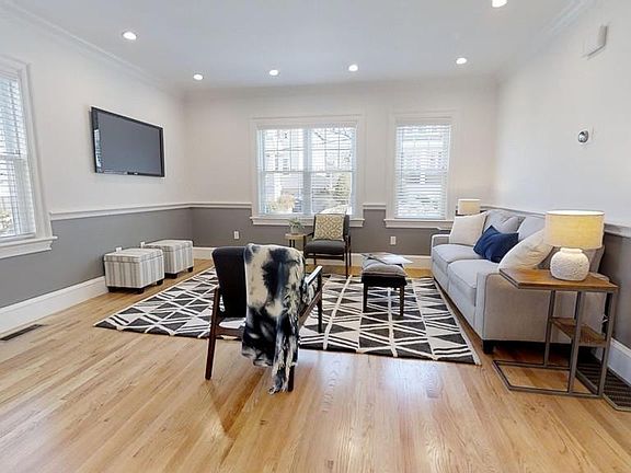 Newly and completely renovated! Townhouse style -detached home. Architecturally designed-masterfully and tastefully executed. Enter this oasis featuring open kitchen, living room with gas fireplace and dining area-sparkling clean and new creating a perfect space for family and friends to gather. Kitchen features spacious center island, high end gourmet range and appliances, quartz countertops. Three bedrooms with custom closets and storage space with en suite bathroom. Balcony off the bedroom creates an outdoor space with views of Boston. Central a/c, Nest thermostats, Ring doorbell system. Yard space with deck is perfect for enjoying grilling and gardening. Two car off street parking. Easy access to Boston/MASS Pike. Flexible Move-In Dates Available