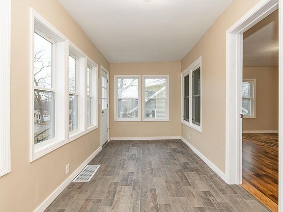 Beautifully remodeled home from top to bottom! This home is move-in ready with many updates including new floors, siding, roof, appliances, and fresh paint throughout. Enjoy a cup of coffee in the sun filled three seasons room that could also be used as a playroom or multi-purpose space. Spacious living room connects to the kitchen for easy entertaining. Kitchen features all new cabinets, tile backsplash, appliances, and countertops. Two good size bedrooms and a full bath finish out the main level. Basement is clean, dry, and painted, with plenty of room for storage. Fenced in backyard and attached one car garage. Close to shopping, restaurants, and more. You won't want to miss your chance to live in this fantastic home!