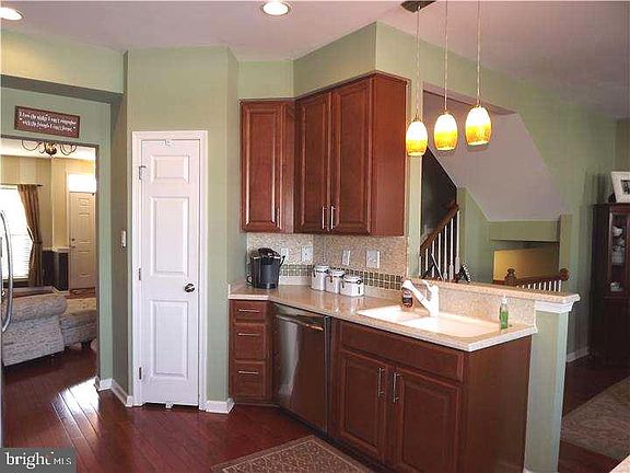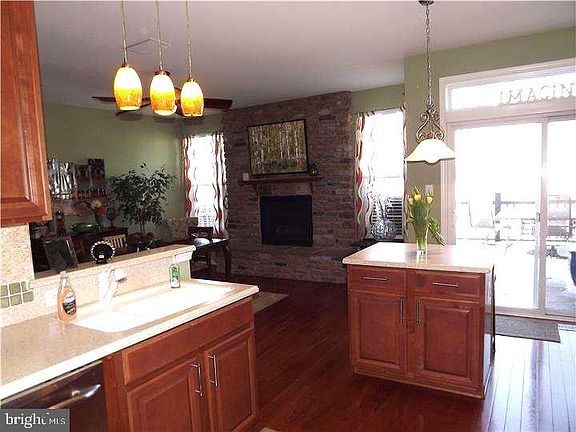 Welcome to 51 Rinehart! Enter into the MAIN LEVEL living room with oversize windows, chair rails and Hardwood floors running throughout. Pass by the convenient powder room, and garage entrance to find the expanded gourmet Kitchen. With 42" upgraded cabinets, Corian Counters, porcelain and glass tile back-splash, SS appliances, gas cooking, Pantry closet and a breakfast Island with matching Corian top. This kitchen opens to the Dining Room highlighted by a floor to ceiling stone Fireplace wired with cable hookup and built-in speakers in the ceiling. You'll love entertaining as sliders from the kitchen lead to a maintenance free composite Deck with stylish black PVC railings and stairs leading down to the fenced in yard and community open space. The Second floor has a spacious Master Suite with walk in closet and ceiling fan. Enjoy your private master bath with granite topped double vanity, Jacuzzi tub, tile floor and tile surround stall shower. Two more generous sized bedrooms, a full hall bath, and convenient Laundry complete this level. The Finished Lower Level (with approximately 484 additional SF) is a great space for a Family Room or kid's playroom. This area offers access to the back yard and a large, unfinished area, for storage. This home is located at the end of a cul-desac with additional visitor parking right next door and there's a Community Playground just a few doors away. Home qualifies for 100% USDA Financing, so make your appointment today. All dimensions of lot and building/rooms sizes should be verified by consumer for accuracy.