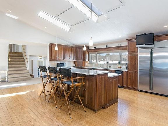 Why buy just a home when you can buy a lifestyle! With 150 feet of frontage on the Porter River you can enjoy boating, kayaking and paddle boarding off your own dock. This is no "cookie cutter" home ! Friends and family will want to gather in this incredible kitchen with cathedral ceilings,and large island which opens to the dining and living areas both offering panoramic water views plus stay warm in the winter with the fireplace. A few steps up lead you to the sleeping quarters where you will find a generous master bedroom which opens to a large deck where you can enjoy water and amazing sunset views. There are also two guest bedrooms and a large bath with steam shower and more. A few steps down from the main living level brings you to the more casual family room with wet bar, 4th bedroom and additional full bath, 1/2 bath sliders to stone patio and outdoor cooking area with amazing views. The 2 car attached garage is a car lovers dream. This waterfront home is one you must see