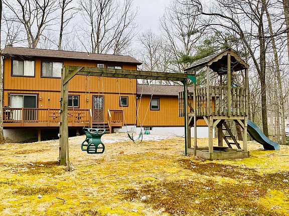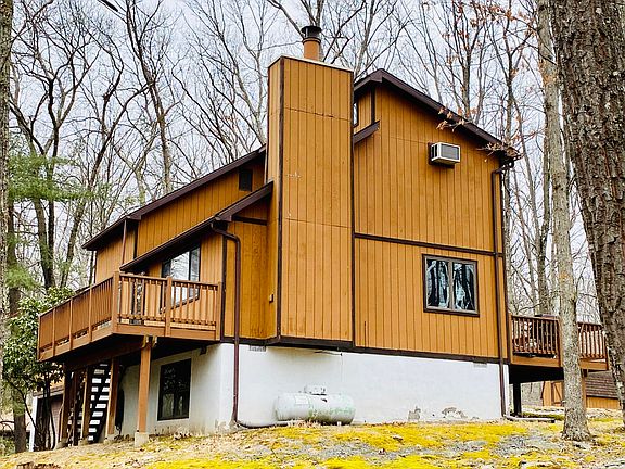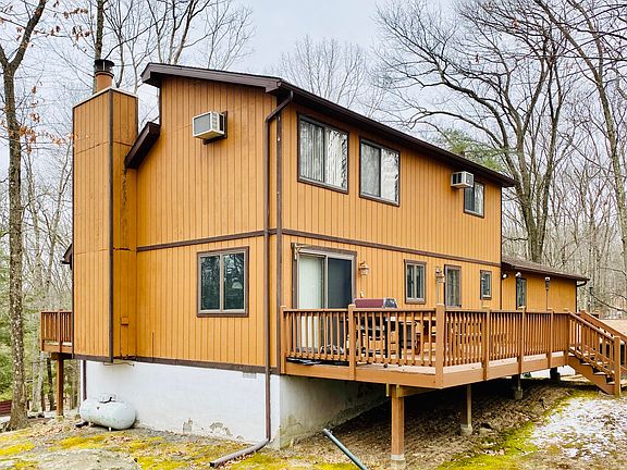 Custom Contemporary lake home w/boat slip on Lake Wallenpaupack. This 4 bedroom home features 2 fireplaces, family room, deck, Cathedral ceilings, paved drive, garage and much more