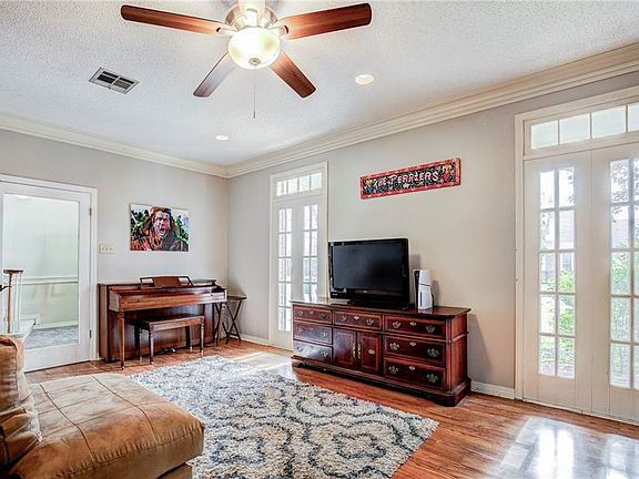Discover your dream home in this stunning 4-bedroom Acadian, perfectly positioned on the picturesque 12th fairway of Cypress Lakes Country Club golf course! This lovely home boasts an exceptional floor plan that welcomes you with a foyer featuring soaring ceilings, a formal living room (currently used as a playroom) with French doors, separate dining area, providing the ideal setting for entertaining guests and creating cherished memories.