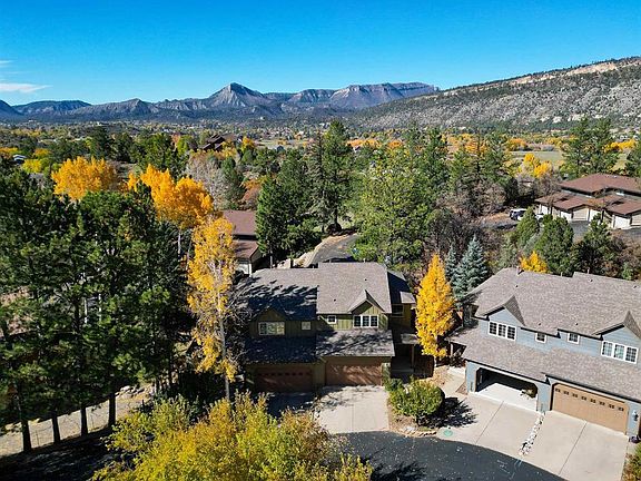 Discover low-maintenance living just minutes from downtown Durango in this immaculate townhome within the intimate 13-residence Orchard Townhomes community, set against a peaceful, tree-lined hillside. This 3-bedroom, 2.5-bath home lives like a single-family residence while offering the ease and convenience of HOA-maintained exteriors. The light-filled main level features an inviting great room with expansive windows and a gas-log stove that warms the space with comfort and efficiency. The well-appointed kitchen includes granite tile countertops and a full appliance package, seamlessly connecting to the dining area and a covered deck—perfect for morning coffee or evening relaxation. The fenced backyard offers a brick-paver patio and raised garden beds, creating a charming outdoor retreat. Upstairs, the private bedroom level includes a spacious primary suite with its own bath, along with two north-facing guest bedrooms that frame beautiful views of the Animas Valley. A second full bath and convenient upstairs laundry complete the upper level. The attached two-car garage with built-in cabinetry provides excellent storage and functionality. Set within a former orchard, this community is surrounded by mature landscaping, fruit trees, abundant wildlife, and exceptional bird-watching. Residents enjoy access to a 1.3-acre common area and a scenic hillside trail leading to an overlook deck with sweeping valley vistas. Low HOA dues of $200/month include snow removal, exterior insurance, road maintenance, and common-area care. A rare lock-and-leave opportunity offering tranquility, convenience, and an exceptional Durango lifestyle.