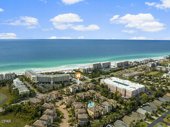 Saint Tropez is an exclusive, gated community boasting 31 Mediterranean villas and deeded beach access. Located on the east end of Scenic Highway 98, its cobblestone streets and picturesque pathways, framed by lush landscaping and royal palm trees, lead to an oversized lagoon pool complete with fountains, a Jacuzzi, bathrooms, and an outdoor shower.