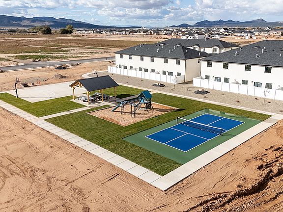 Spacious 3-bedroom, 2.5-bath townhomes with 1,716 sq. ft. over two levels. Built with 2x6 exterior walls and extra insulation, plus R-13 insulated shared walls for efficiency, comfort, and privacy. Interiors feature quartz countertops, tile flooring, carpeted bedrooms, and a master suite with separate tub, tiled shower, and walk-in closet. Homes include fridge, range, microwave, dishwasher, and window coverings. Community amenities include pickleball, basketball, playground, and pavilion. Iron Hawk Townhomes offer modern design, quality construction, and exceptional value.