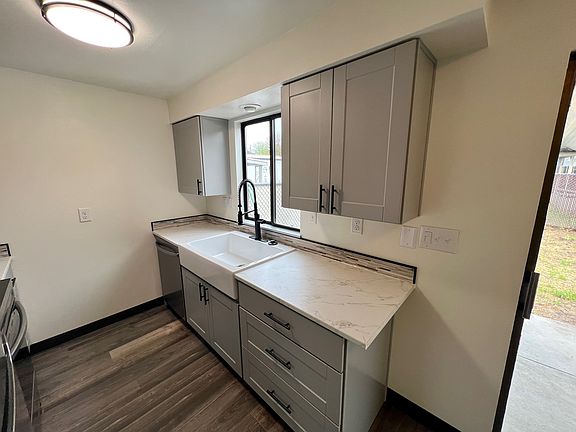 Home was just remodeled...brand new floors, new kitchen and bathrooms. Also, new paint inside and new carpets.