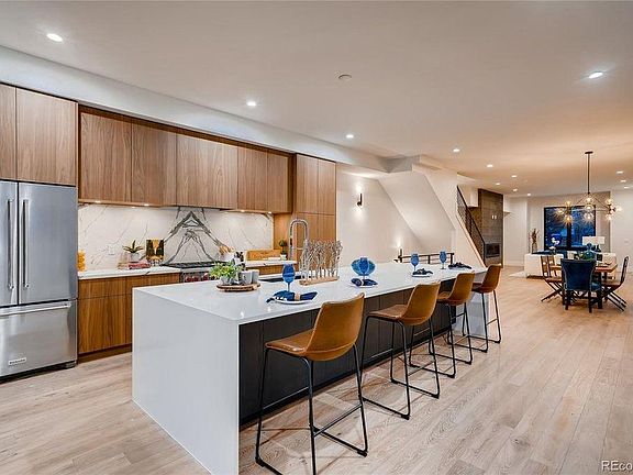 - Luxury Cherry Creek living at its finest! This low maintenance five bed six bath home features an open floor plan with high end finishes throughout. Walk in to a massive wide open main level floor plan complete with 7 White Oak engineered wood floors, 10' ceilings, half bath, floor to ceiling windows, gas fireplace, Vonmod 13' Mineral Triba kitchen island with quartz countertops, Frozen Walnut soft close kitchen cabinets and pantry, New stainless steel appliances including discreet Zephyr Monsoon hood, 36' Wolf 6 burner gas stove, Quartz backsplash imported from Spain and undermount kitchen lighting. 9' patio slider doors brings the outside in with concrete patio and a two car detached garage. Continue entertaining downstairs in your new open media room complete with 11' high ceilings, personal steam spa, conforming basement bedroom, storage/flex room and 3/4 hallway bath. Head upstairs to your Master Bedroom complete with with 5 piece master bath with designer rainfall shower, huge soaker tub, double sinks, gas fireplace, and walk-in closet. 2 secondary bedrooms accompany the upstairs master with a full Jack n Jill bath and upstairs laundry room. Continue higher to enjoy gorgeous front range and city views on your front to back rooftop deck! Over 650 sq ft of outdoor living space alongside outdoor gas firepit, rooftop wet bar with entertaining area, 3/4 bath, and bedroom.