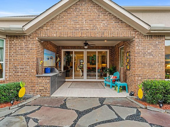 Come see this luxurious & flexible open floorplan which offers thoughtful features throughout. The entry gallery welcomes you with open sightlines to the main living areas. The Island Kitchen is open to the Breakfast & Family Rooms and features quartz countertops, a stainless double-wide farmhouse-style sink, five-burner gas cooktop, KitchenAid stainless steel appliances, and a butler’s pantry. Gorgeous built-ins anchor the Family Room with fireplace. Two bedrooms on the 1st floor and including the Primary Suite with a spacious bath retreat. Upstairs includes a Game Room and separate Media Room with built-in speakers, 2 additional bedrooms, and a landing nook with a built-in desk. Multiple outdoor living spaces include a gas log fireplace, gas grill with quartz counter top (2022), accent lighting, and landscaped yard. Generator INSTALLED in 2021 with a fresh battery installed in 2026! Corner lot located in convenient Imperial w/access to trails, parks, shopping and FBISD! Welcome Home!