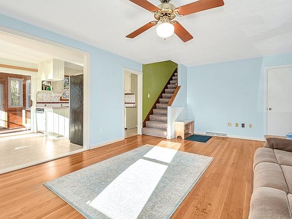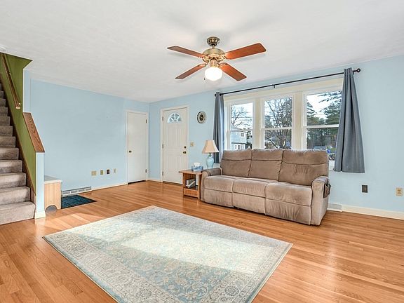 Located in sought after neighborhood ~ Updated and well maintained home with 4 Bedrooms and 2 full Bathrooms. Living room w/great natural light, ceiling fan & hardwood floors. Dining room w/slider leading to heated three season room w/vaulted ceiling. Kitchen with newer appliances, gas stove & ss refrigerator. First floor with primary bedroom w/cedar closet & hardwood floors. Additional first floor bedroom w/hardwoods & full main bathroom. Second floor w/ two bedrooms, full bathroom & home office. Finished lower level for playroom & additional storage room . Updates include appliances, windows, interior & exterior painting, mini-split central air for 2nd floor, propane tank for gas cooking & hw heater. Ceiling fans and whole house fan. Large backyard with deck, patio and two sheds. Abuts conservation land great for hiking and dog walking. Close to major highways for commuting and shops & restaurants. Commuter rail in neighboring community. Town Water & Sewer. Top rated school system.