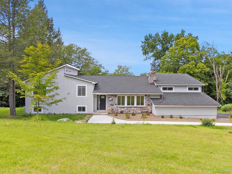 Welcome home to this updated contemporary split level! Sitting on over 1.5 acres, it offers privacy, lots of entertainment space, mountain views, a large yard, as well an XL deck and patio to enjoy the weather. Although a legal 3 BR, it lives like a 4 BR and has the potential for an in-law suite downstairs. Replete with a statement flagstone fireplace and quartz countertops in the kitchen, the upper level is the heart of the home. Plenty of storage/closet space, stacked washer and dryer, two fireplaces, 2 car attached garage, and just 10 minutes to Danbury and major highways (684 and 84).