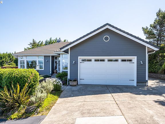Breathtaking Ocean & River Views in Gated Shelter Cove. Perched on a private, beautifully landscaped lot, this custom-built 3-bedroom, 3.5-bath home offers unparalleled views of the Pacific Ocean and Siuslaw River. Located in the exclusive Shelter Cove community, this well-maintained retreat captures expansive views from the living room, kitchen, dining area, and primary suite. Step inside to discover a thoughtfully designed layout with fresh updates, including brand-new stainless steel kitchen appliances, new carpeting, a new hot water heater, and fresh exterior paint. Two ensuite bedrooms provide privacy and comfort, while a third bedroom offers additional space for guests. Relax and entertain on the expansive wrap-around deck, complete with a hot tub—perfect for soaking in stunning sunrises and breathtaking coastal sunsets over the ocean, dunes, and river. The attached three-car garage provides ample storage, with additional parking space for an RV or boat. Experience coastal living at its finest—schedule your private showing today!