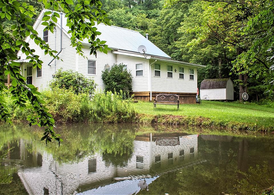 What a find! This secluded camp, formerly known as the Jolly Eight Hunting Club, is nestled at the end of a private drive and boasts its own spring-fed, stocked pond situated in a park-like setting. Relax on the covered back porch, listen to the sound of water falling and enjoy the abundant wildlife. The very well-maintained camp has an updated electrical box, a metal roof, new plumbing throughout, and comes with a home warranty. Downstairs you'll find the kitchen with newer appliances, a dining area with a spectacular bench table, two family areas, and a roomy bath. The second floor sleeping