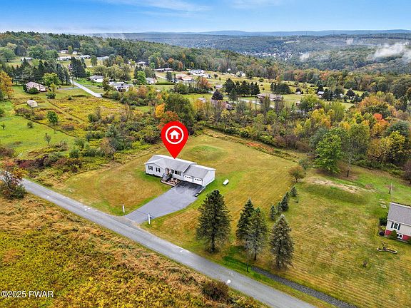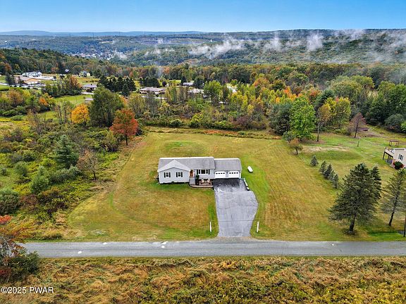 Come see this charming, immaculately remodeled, like new, 3-Bedroom, 2-Bath Ranch Home on 1.12 Acres with a Two-Car Garage Close to Downtown Hawley and Lake Wallenpaupack! Arrive at this beautiful, home and take in the pristine, over-one-acre parcel with its wide-open lawn, paved driveway, and welcoming front patio -- a perfect spot to enjoy your morning coffee. The expansive backyard is a highlight, ideal for outdoor fun, gardening, or relaxing. From the backyard deck, take in the sweeping countryside views and imagine summer evenings dining al fresco or hosting barbecues with friends. Step inside to discover a bright freshly painted, thoughtfully updated single-level home with new hardwood floors throughout the main living spaces. The cheerful living room is filled with natural light and flows into the dining area and new kitchen, creating a warm, welcoming space for everyday living. The kitchen features butcher block counters, crisp cabinetry, and a matching appliance suite including new electric oven, dishwasher, and refrigerator. A large window over the sink frames the backyard view, making meal prep a pleasure. The open connection between the living room, dining room, and kitchen makes this home perfect for gathering with family and friends. Down the hall are three comfortable bedrooms and two beautifully remodeled bathrooms, including a primary bedroom with its own private half bath. Each room is inviting and offers flexibility for bedrooms, guest space, or a home office. The full, unfinished basement offers excellent potential for future living space, recreation room, or workshop. Enjoy High Efficiency Forced Air Heating & Central AC all year long. The two-car garage provides space for parking & storage, keeping everything organized and easy to access. The whole house backup generator offers peace of mind if the power goes out. This home blends a modern interior with a quiet, private setting with amazing single level living in an immaculate like new home!