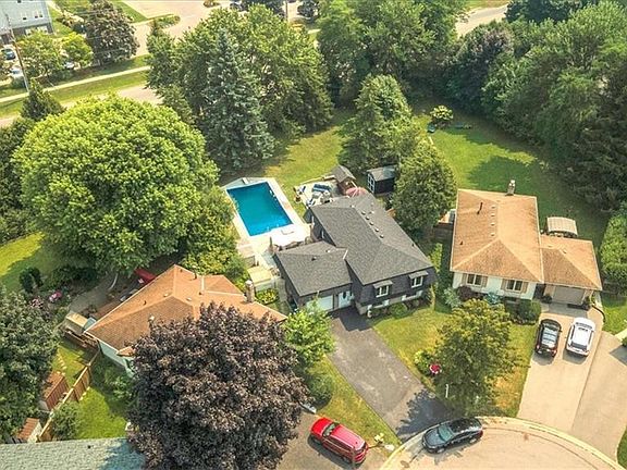 Welcome to one of Brantford’s most sought-after family-friendly neighbourhoods. This beautifully maintained raised bungalow offers the perfect blend of convenience, space, and charm. Walk into a spacious foyer with new ceramic flooring, garage access, and a walkout to the backyard. The main floor features a bright and inviting living room with large windows that fill the space with natural light. The adjacent dining room offers a seamless flow, perfect for entertaining or family dinners. The updated kitchen is both functional and stylish, with modern appliances and elegant finishes, making it perfect for home chefs. Down the hall, you'll find three generously sized bedrooms and a 5-piece bathroom. The primary bedroom offers ensuite privilege, providing added comfort and convenience. The fully finished basement is an entertainer's dream, with a large rec room featuring a cozy fireplace and a built-in bar. This space is perfect for movie nights, celebrations, or casual gatherings. Two additional bedrooms and a renovated 3-piece bathroom offer privacy for guests or extended family members. Outside, the home sits on a massive pie-shaped lot that serves as a true backyard oasis. Whether lounging by the pool, soaking in the hot tub, enjoying drinks at the tiki bar, or hosting summer BBQs in the spacious seating areas, this yard is perfect for making memories. Significant updates include: new concrete around the pool, a new pool liner (2025), new chlorinator, resurfaced driveway, roof replaced in 2024, and a new garage door (2022). The home also features an updated kitchen, updated windows, updated flooring in four of the five bedrooms, updated lighting throughout, updated ceramics in the hallway and bathrooms, and updated toilets in both bathrooms. Additional mechanical upgrades include an updated air conditioner, water softener, and hot water tank. Perfectly located on a quiet court, close to parks and all amenities.