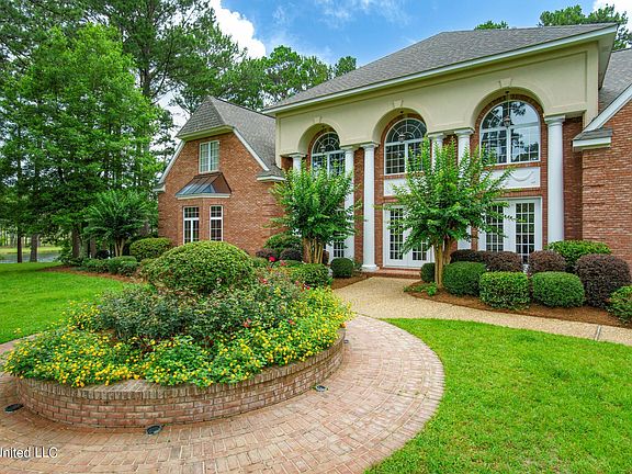 Brand New Roof! This lakefront estate sits on approximately 1.6 acres in the Oak Grove School District and offers rare privacy, a gated entrance, and panoramic water views from nearly every major room. The circular drive leads to a stately brick façade with soaring columns and a two-story arched window system that sets the tone for the scale and craftsmanship found throughout. Inside, guests step into an impressive foyer finished in Italian stone flooring beneath a massive chandelier. Dual curved staircases rise to the upper-level bedroom suites, each with its own private bath and walk-in closet. From the foyer, sightlines extend through the formal great room—designed with intricate millwork, two fireplaces with carved mantels, floor-to-ceiling arched windows, and multiple sets of French doors opening to the covered terrace overlooking the lake. The main-level primary wing is positioned for privacy and includes a spacious bedroom, an office with custom built-ins, and a wet bar. The attached bath features marble floors, a large soaking tub framed by decorative columns, separate vanities, and a walk-in shower. The formal dining room offers generous square footage, detailed trim, and tall windows for natural light. It connects directly to an expansive kitchen outfitted with rich custom cabinetry, granite counters, double islands (one with prep sink), a gas cooktop with decorative columns, wall ovens, and abundant storage. A large breakfast area and adjoining keeping room provide additional space, each showcasing extensive millwork, tall windows, and a fireplace. A bright sunroom wrapped in glass delivers uninterrupted views of the lake, landscaped grounds, and surrounding trees. Outdoor spaces include a covered terrace, brick pathways, and multiple seating areas positioned to overlook the private waterfront setting. Additional features include a three-car garage, large laundry room, generous closet storage throughout, tall interior doors, custom windows and transoms, plantation-style detailing, and the privacy of a gated brick entry. A rare combination of scale, craftsmanship, and setting, this property offers one of the most impressive lakefront positions in Oak Grove. Experience refined living at this landmark waterfront residence.