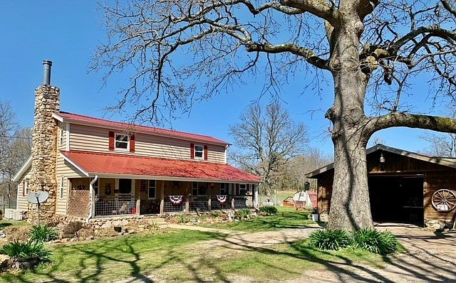 Home on 39 Acres For Sale This is a great country home with acreage for sale that is super remote & tucked back in the woods on a dead end road. With a hilltop setting, this farmhouse styled home sits on 39 acres m/l and would make a great hobby farm. Includes a workshop & 2 ponds. Remodeled with new siding, windows, doors & a metal roof in 2018, this home is in great condition. The owners kept the rustic features of the inside of the home intact to make it feel like a spacious cabin. With 1 ½ stories, this home has 2 bedrooms, 2 baths, living room with fireplace, kitchen with lots of cabinets, dining area & more. An inviting covered country porch stretches across the front of home. An added bonus is a 15x20 finished storage building that the owner uses as a craft shop & office area. The 39 acres m/l has approx. 15 acres of open pasture around the house complete with 2 ponds & chicken coops. Also included is a large 24x40 workshop with side sheds that is perfect for woodworking & storage. This property also makes a great Arkansas hunting property for sale. With approx. 25 acres in woods, this acreage has great deer hunting and turkey hunting.
