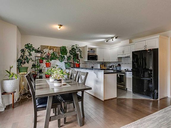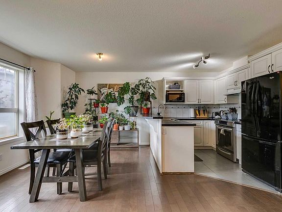 OPEN HOUSE October 5 12:00-2:00 pm. Ideally located close to schools and shopping, this 4 bedroom 3.5 bathroom townhouse is a great option for young families, first time buyers, or investors. The monthly fees are among the lowest of any townhome project in town, and the complex is well managed with a healthy reserve fund. The main floor has an open concept design with lots of natural light, and the kitchen features white cabinets and a raised breakfast bar with seating. Off the dining area is access to a small patio and BBQ space with a patch of grass that provides separation from the neighbors. The home is tucked into a quiet cul de sac with no through traffic, making it an excellent setting for kids. Upstairs are 3 bedrooms and 2 full bathrooms including a primary with double closets and a 3 piece ensuite. The fully finished lower level offers a large recreation room or TV area, a 4th bedroom with a good sized window, and another 4 piece bathroom with tile flooring. A single attached garage adds convenience and is especially welcome in the winter.