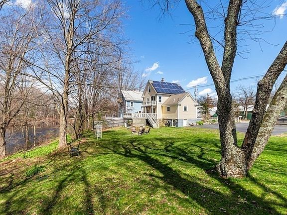 Imagine living amongst nature with ducks, geese, blue herons, and beavers right outside your window, fresh raspberries at the bottom of your deck, and mature sugar maple trees that can be tapped for making homemade maple syrup.This Greek Revival farmhouse built in 1910 is truly an oasis from the hustle and bustle, yet within minutes, you can be on Route 2, I-495, or at the commuter rail station to Boston. The home features custom built-ins, tons of natural light, and original wide plank pine flooring in most rooms.Recent upgrades include solar PV panels, high efficiency gas furnace and air conditioning, tankless water heater, upgraded insulation, a portable generator hookup, repointed stone foundation, encapsulated crawl space, recessed lighting, ceiling fans, and a finished attic bonus room.This comfortable house with tons of character is waiting to welcome you home.