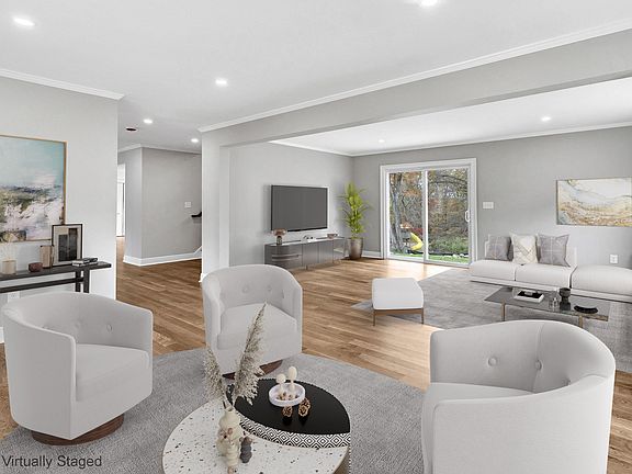 Welcome to this beautifully crafted 4-bed, 3.5-bath modern farmhouse colonial nestled on a serene .97-acre lot in the heart of Huntington. This home has been designed to blend contemporary elegance with classic charm. Step inside to find a bright, open-concept layout featuring gleaming hardwood floors throughout. The main level boasts a dining room and a high-end kitchen equipped with stainless steel appliances, a center island, custom tile backsplash, and ample cabinetry-perfect for everyday living and entertaining. The stunning family room, highlighted by a cozy gas fireplace, flows seamlessly to an oversized patio overlooking the large backyard. Stylish powder room on the main level. Upstairs, the luxurious primary suite features large walk-in closets, and a spa-like bath with double vanities, a soaking tub, and a tiled shower. 3 additional bedrooms include a jack and jill bathroom with full bath. 2nd floor laundry room. Walk up attic with finished bonus room. Large, finished basement offers endless possibilities. Additional highlights include propane heating, central air, public water, and brand-new septic system. Perfectly located near local amenities, parks, and schools, this home offers the best of comfort, style, and convenience.
