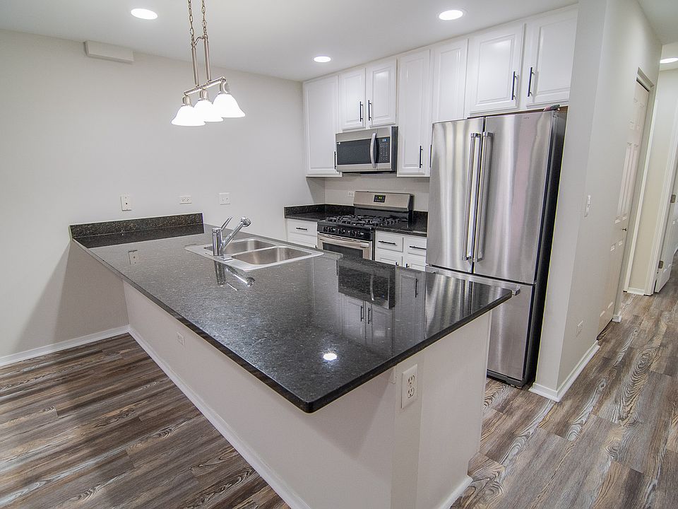 Gas fireplaceBrand new flooringLight and bright unitBreakfast barGranite countersSs appliancesNew blinds