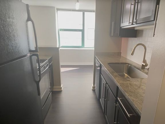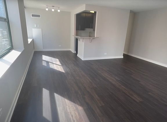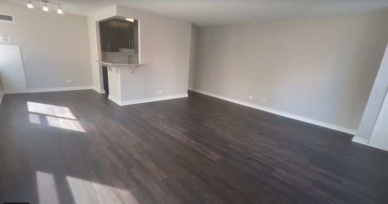 Bright, spacious 2-bed with in-unit laundry and resort-style amenities. Sun-splashed living/dining area features wide-plank hardwood floors and plenty of room to entertain or work from home. Both bedrooms are generously sized, and the layout offers great flow with multiple furniture configurations. Modern lighting and large windows keep the home feeling open and airy throughout.