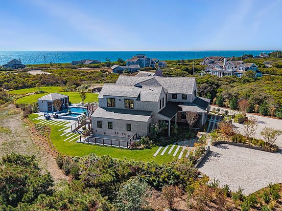Your Beach and Entertaining Lifestyle Estate awaits! With breath-taking views of the ocean, unsurpassed access to the popular surfing beach of Nobadeer, and over 8,000 sf of high end, new construction, executed with a smart contemporary aesthetic, 51 Weweeder ticks every box. Imagine being able to grab a towel and walk out your backyard to the beach located less than 200 yards away. With six en suite bedrooms in the main house, including an entire nanny apartment located on the lower level, plus a separate studio apartment above the two car garage, there is plenty of room to accommodate large groups of family and friends. The exterior entertainment spaces abound. The generous pool (38' x 20') and spa (10' x 8) are a focal point, framed on one side by the first and second floor decks of the house and on the other side by the cabana. Choose between an intimate propane-fired fire pit located on the bluestone patio conveniently sited between the spa and cabana, or put your feet in the sand, while sitting around the 6' wood-fired fire pit built into a sand dune. The manicured lawn is an ideal location to set up a volleyball or badminton net, toss a football, or kick the soccer ball. Inside the main house, the entertaining spaces continue, with living rooms on three levels, accessed by a glass elevator or by a beautiful gently winding white oak and glass staircase. Additional bonus spaces include a game room with a bar, a home gym, and a 500 bottle-wine cellar, all located on the lower level.