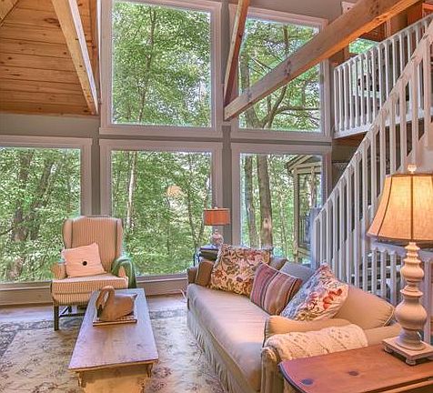 You have to see this charmer!!! It is an artist' retreat with whimsical touches everywhere including a cottage garden. Privacy and serenity are the order of the day in this unique home bordering the Nature Valley with hiking trails, streams and waterfalls. Panoramic views of the mountains are seen from most rooms in house and the loft could be a 4th bedroom or bunk area for kids. This is the perfect weekender or full time residence for the buyer who is looking for that something special. Come home to the mountains of Big Canoe.