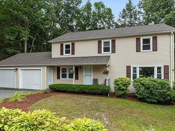 Four bedroom Colonial home located at the end of cul de sac on 1.58 acres. Covered front porch, 2 car garage, Large front foyer entry with tile flooring, Front to back living room with wood flooring opens to kitchen with breakfast bar, multiple cabinets and stone counter top space. Conveniently located laundry room and half bath off kitchen area. Formal dining room with wood flooring, family room has fireplace and french doors leading to the three season room that overlooks private wooded backyard. 4 bedrooms and full bath on second floor. Walk up attic. Heated playroom in walkout lower level for extra space. Private residence Wilder beach access located on Lake Whalom just down the street! A great place to call home....