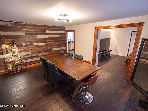 This is your opportunity for a remodeled 3-bedroom, 2-bathroom home only steps from the well-loved Derby Park and in the Hudson Falls School District. The first floor features hardwood floors, a spacious family room, a dining room with a custom accent wall, an ideal office space, and a full bathroom. Upstairs, you'll find three comfortable bedrooms and a second full bathroom. Modern conveniences include public water, public sewer, a natural gas forced hot air furnace, and central air for year-round comfort. Set on a generous 0.33-acre lot, this home also offers a detached two-car garage, a shed, a backyard fire pit, and inviting front and back covered porches.