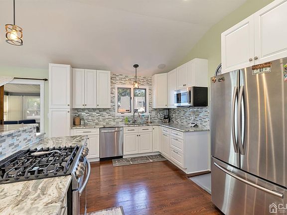 Welcome Home! Instantly feel at home when you enter this 4 bedroom, 1 and a half bathroom gem! This beautiful home features a newly renovated open concept eat-in kitchen with vaulted ceilings, stainless steel appliances, large island and breakfast bar, large bay window in adjoining formal dining room provides plenty of natural light and has a built-in sound system and an inviting family room. Relax in three season room which overlooks fully fenced large yard with deck and storage sheds. Additional side entrance on lower level, separate laundry room, dual zone temperature system, hardwood floors throughout. Tastefully decorated and ready to move in! Excellent location close to transportation and shopping.
