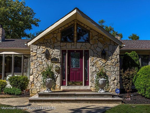 You will not be disappointed after previewing this immaculate Ranch in desirable Northern Tinton Falls. This home has HW floors throughout most of the home; you'll enjoy the open concept immediately upon entering. The kitchen & baths are newer. The kitchen, DR & the large primary BR have sliders leading to an expansive deck & overlooks a private oasis w/ gardens, shed & a large in-ground salt water heated pool with hottub. The finished basement with a large living area, a bar area, & another room being used as a spare bedroom adds livable space and is perfect for entertaining. There is also a large storage area in the basement. The 2 car garage is definitely impressive!! The location is ideal being close the GSP, Rt 18 the beaches & to fabulous restaurants. Truly a Must See!