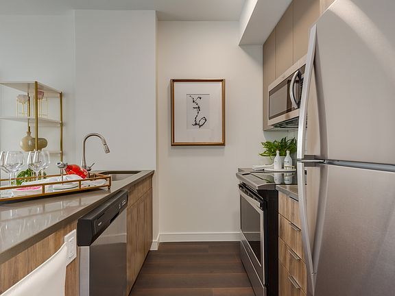 Choose from available studio, 1-, 2-, or 3-bedroom suites designed with modern features and finishes, including premium stainless-steel appliances, quartz countertops, ample storage, in-suite washer and dryer, balconies with beautiful views and much more!