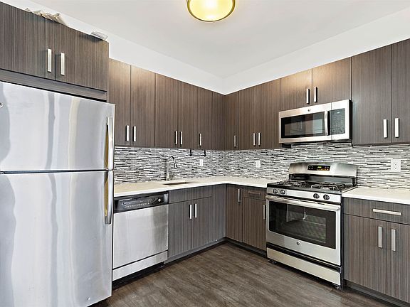 2 bed 2 bath bath apartment, top floor, very spacious primary bedroom with walk-in closet. Gas fireplace! Gourmet kitchen with granite counter. S/S appliances, hardwood floors, ceramic tiles bathroom. NYC view! 4th Floor! Washer and dryer available in the unit. Private parking garage available $125 per month. Walking distance to shops & restaurants. Easy commute to NYC, the bus stop around the corner. Great location for a growing community of urban professionals, couples and family with kids. Pets friendly (up to 25lb) with $350 non-refundable fee. Tenant pays electric and gas, water and sewerage.