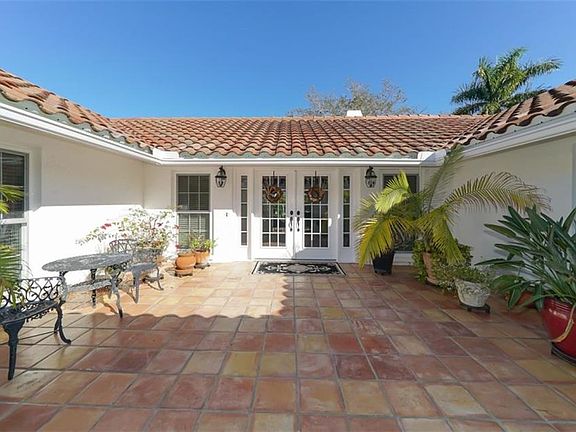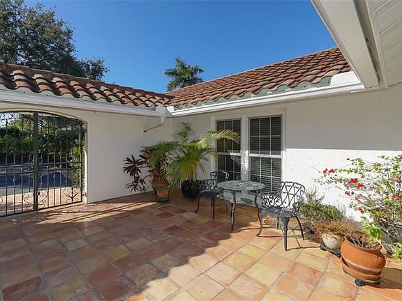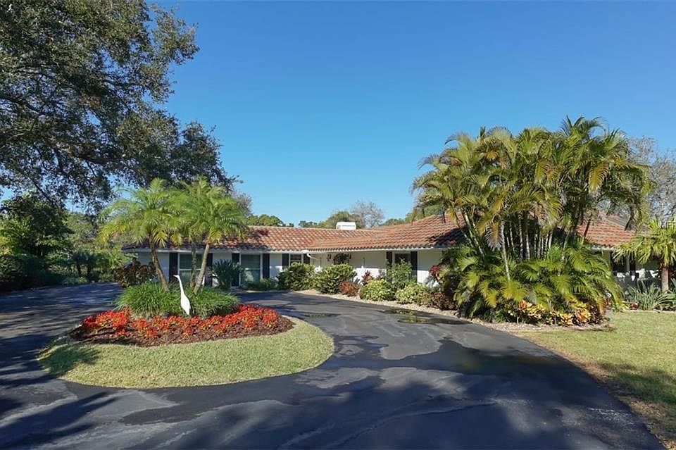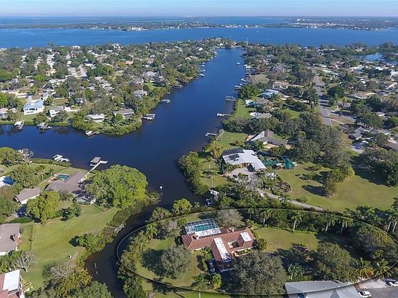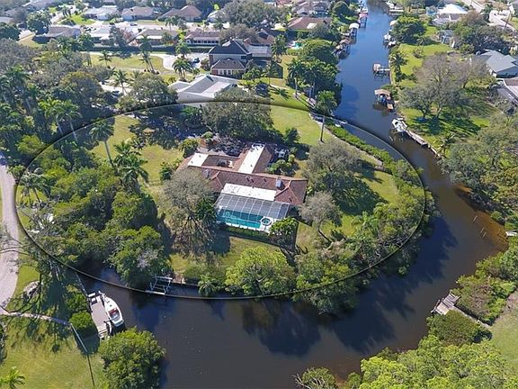 Welcome to Warner's Bayou in Northwest Bradenton where this five-bedroom residence rests on its own picturesque peninsula boasting 300'± of waterfront splendor. Boaters will relish its navigable river and gulf access from an oasis of serene beauty. Your journey begins with a meandering drive through mature oak, palm and mango trees over a spring fed creek. Enter the gated courtyard to welcoming double French doors. Once inside, discover a formal living room with a wood burning fireplace and dining room, each with views of the bayou. The kitchen/family room combination has the second fireplace which also opens to the adjacent game room. The game room addition with 12-foot vaulted ceilings has inviting views and plenty of room for gathering. The large updated kitchen has granite counters, stainless steel appliances and an additional prep sink. Altogether, there are four sets of double French doors that take you to the covered lanai and caged heated spa and pool. Enjoy gentle breezes as you lounge by the pool or delight in refreshments under the covered lanai. The fenced yard with dazzling water frontage and a 16' dock has an invisible fence running along the water (and in front of the gates in the fence) to keep your pets safe. A 1,000-foot irrigation well keeps your landscaping lush and green. From beautiful beaches to nature parks and art and culture, explore the beauty of Florida's Gulf Coast by land or by sea.
