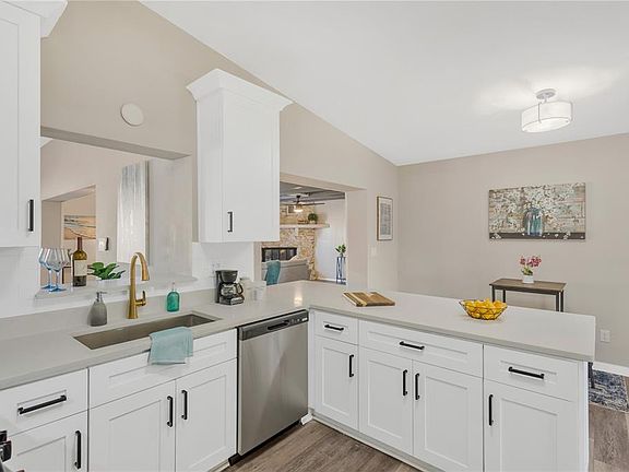 - Cathedral Ceiling(s), Eating Space In Kitchen, Primary Bedroom Main Floor, Solid Wood Cabinets, Stone Counters
