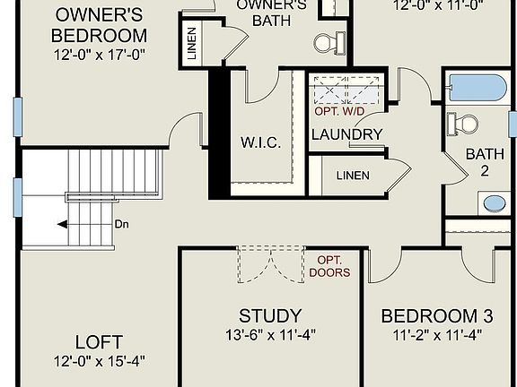 On the second floor, a versatile loft area provides additional living space, while a study offers a quiet retreat for work or hobbies. The two secondary bedrooms are well-sized and share a full bathroom with a double vanity. The spacious owner's suite is a highlight, featuring a large walk-in closet and a luxurious bathroom with dual vanities and a walk-in shower, creating a private sanctuary within the home. The Prelude floor plan is designed to meet the needs of modern living with ample space and thoughtful details throughout. This home is to receive the move-in package: Refrigerator, washer/dryer, and blinds.
