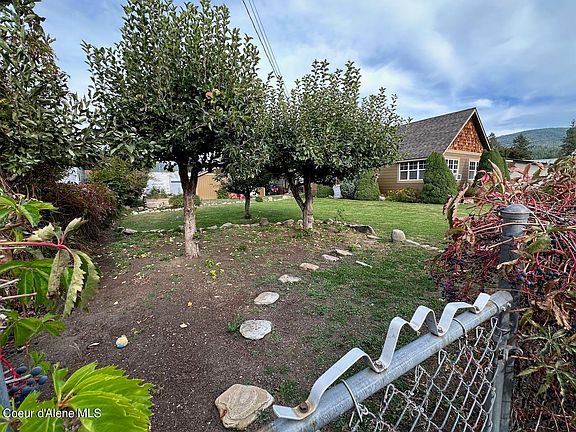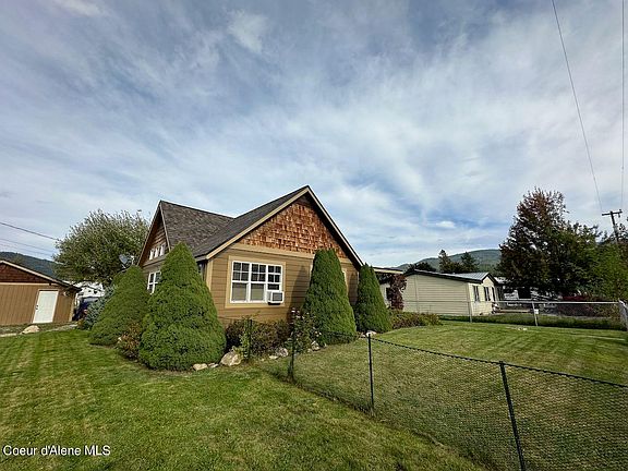 Charming single-level Pinehurst home with 2 bedrooms and 2 bathrooms, including a primary bedroom with an en suite bathroom. Enjoy a spacious fully fenced yard, greenhouse, storage shed, and a 2-car detached garage. This property features mature fruit trees, raised garden beds, and a fire pit for outdoor gatherings. Conveniently located near acres of accessible land and just minutes from the Coeur d'Alene River and Silver Mountain Resort.