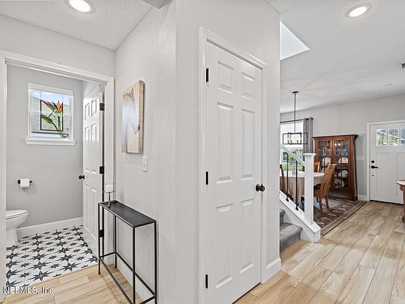 The kitchen boasts SS appliances, granite countertops, updated backsplash,  large island and pantry. The family room looks out to your oversized partially covered patio, well maintained yard with lake fed irrigation that backs up to a wooded preserve. The newly carpeted second floor offers two bedrooms, an updated full bath and a large bonus room that could easily be converted to a fourth bedroom including ample space for your home office. Recent updates include LVP flooring throughout the main level, HVAC (2022), full house water filtration system, hot water heater, roof (2018), and much more. Don't miss this incredible opportunity to own a charming home in a fantastic community. Families will appreciate the low-cost HOA amenities to include pool, club house, playground and newly installed putting green. Conveniently located just minutes from shopping, golf courses, and easy access to I-95, historic downtown Saint Augustine, pristine beaches, and a short commute to Jacksonville Airport. Families will appreciate the highly rated Mill Creek Elementary and Tocoi HS, both recognized as some of the best in Northeast Florida. Schedule your showing today and experience the charm of World Golf Village living.